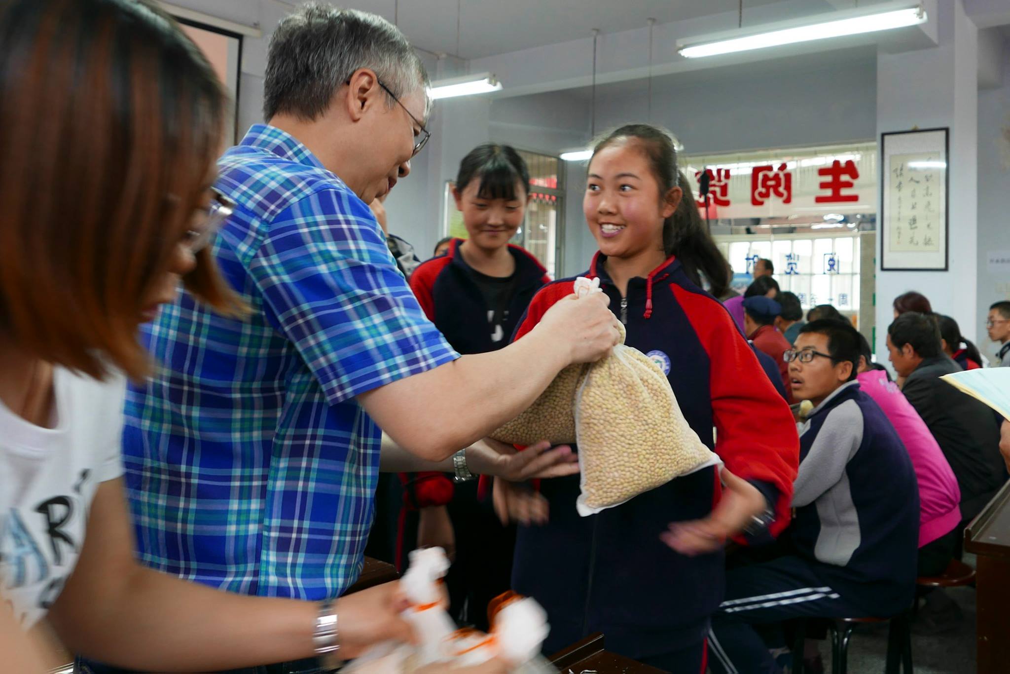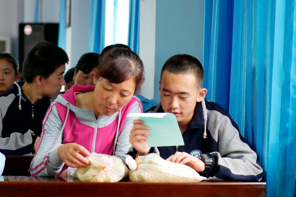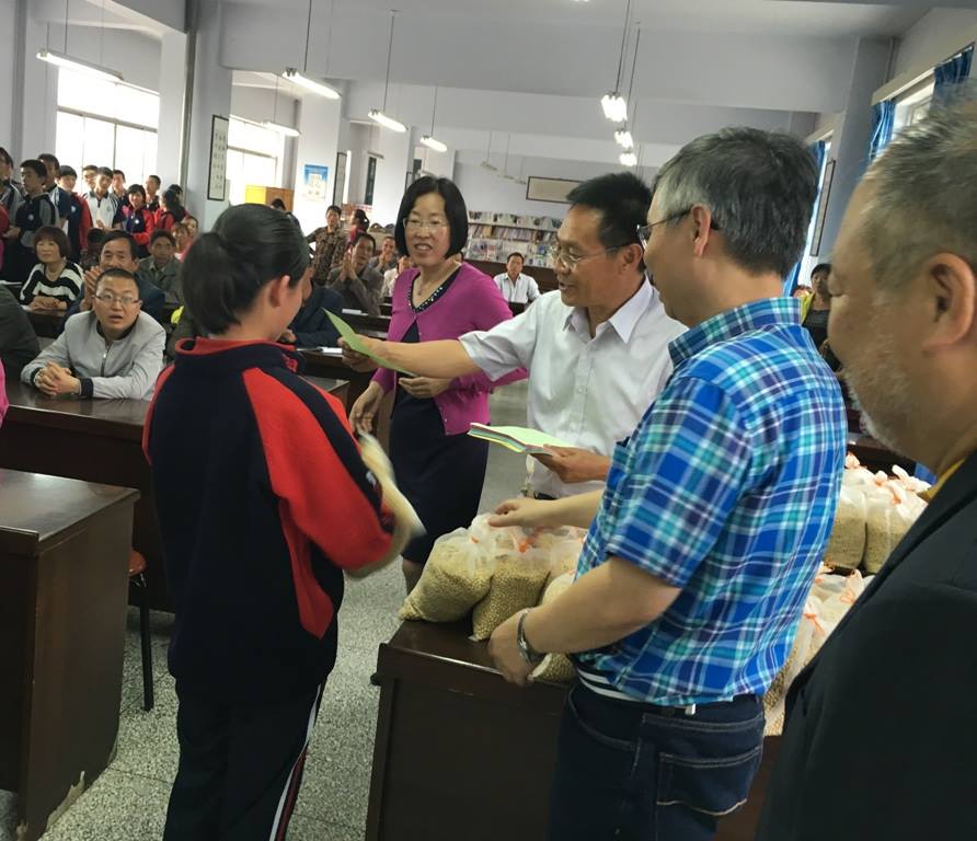 7月11日下午,我們探望定西一中的高一學生。黃土地基金每年資助的學生,全是農民子弟。今年,我們和同學會面的聚會,請家長同來,除了贈送文具,也贈送抗旱大豆種子給他們。本會的兩位顧問香港中文大學林漢明教授和甘肅農科院張國宏教授,成功培育了耐逆抗旱大豆,並於年初取得認證,可以推出市場。我們因為近水樓台的關係,得以成本價購進了原原種,送給我們資助的農家子弟,更邀得成功培育出抗旱大豆的林漢明教授和張國宏教授向同學和家長解說,讓他們認識新品種的特點,了解如何利用套種,不單可以增加收入,也可以改良土質。我們的活動,讓農民也可以享受科研的成果。