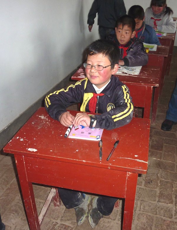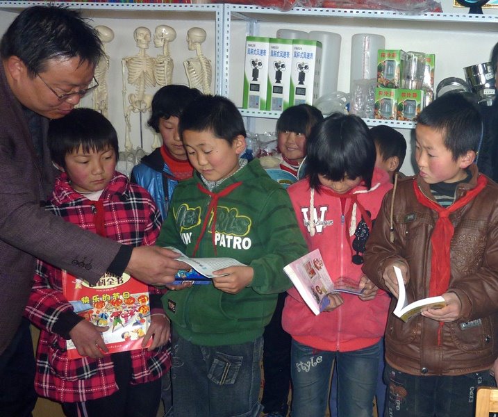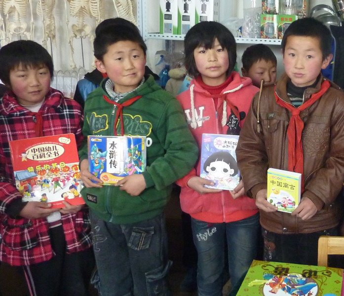 The YEF donated 1600 books to the two schools that we reconstructed last year, 800 for each. When we arrived in Dingxi, it rained for the first time this year. Due to the rain we could only visit the Liang Zhuo Min Memorial Primary School. All students were happy that this winter they could stay in this warmer and and brighter new premises. The students were rather excited about the new books. We wish that with this donation, the children could establish an interest and habit in reading. We have asked the School Principal to organize a writing competition on their favourite book. We will bring them prizes on our next visit.