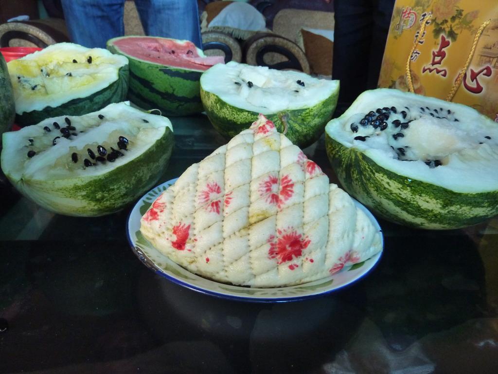In early 2012, YEF tried out a new, high-value crop – vegetable seeds – with a peasant family in Xiaolu Village of Jingyuan County, Gansu Province. The trial project has the assistance of the Gansu Academy of Agricultural Sciences and Jingyuan County Federation of Industry and Commerce. Good progress has been achieved but, unfortunately, the worst flooding in 60 years occurred in July and damaged most of the crops. When we visited the family in September, we undertook to purchase from Mr. Wu the remaining 100 kg of seeds and invited him to continue to work on the experimental fields. Mr. and Mrs. Wu were very hospitable and treated us to some water melons which they grew and some local moon cakes.