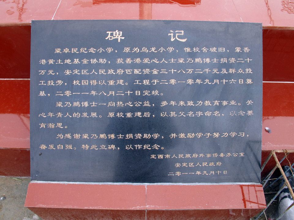 A ceremony was held on Septem⋯⋯ber 10, 2011, which was the Teacher’s Day, to mark the completion of the redevelopment of the Liang Zuo Min Memorial Primary School in Anding District, Gansu Province. The school was formerly known as Wulong Primary School. The project was aided by YEF with a donation from Dr. Norman Leung, who named the new school after his father. Dr. and Mrs. Leung unveiled a plaque at the ceremony and gifts were distributed to all pupils.