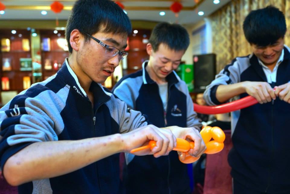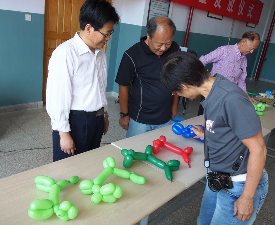 2014年9月,我們再到甘肅發放高中助學金。今年資助的學校,增加到三間。 6月也有一批同學高考成功,60名高三學生,有48名考上大學,我們也發放獎學金,鼓勵他們繼續努力。 我們對資助的高中生,每年除了金錢資助和送禮物,也會安排一些活動,讓同學看看學校以外的世界。今年,得到好友義助,我們教同學做氣球小狗,分組比賽,選出一個做得最漂亮的。遊戲目的是讓學生發揮創意和合作精神,同學都玩得很投入。我們帶了彩卡給同學寫上他們的心意,讓我們帶回香港轉交各贊助人。探訪的時候,還有幾天到中秋節,大部份同學都送上節日的祝福。We visit Gansu again in September 2014 to give out bursaries to senior secondary students. The number of schools receiving assistance has increased to three this year. Another batch of students has successfully passed the university entrance examination in June. Of the 60 students, 48 have been offered places in university. We give scholarships to them as an encouragement for them to continue to do well. In addition to financial assistance and gifts, we arrange activities for the assisted students to help them see the world outside school. This year, with help from good friends, we teach them how to make puppies using balloons. We hold a competition to select the most beautiful puppy. The purpose is to let them express their creativeness and work as a team. They are very engaging. We also bring colourful cards for them to put their thoughts on and take the cards back to the sponsors in Hong Kong. As our visit is close to the Mid-Autumn Festival, most students offer festival wishes.
