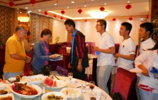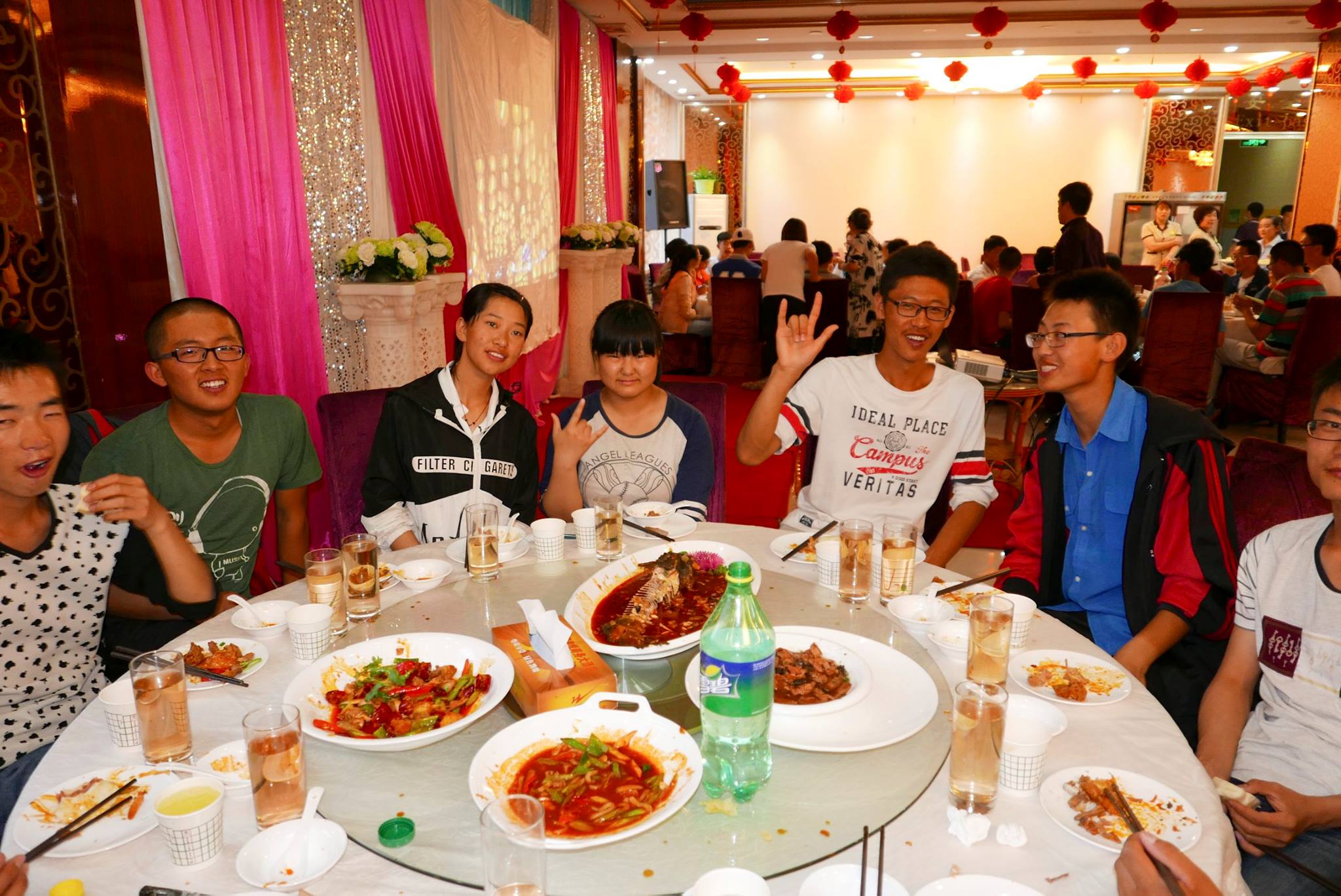 2016年7月我們分別為兩所高中的同學們舉行畢業宴會。無論有沒有考上大學的也有參加,因為他們都完成了一個十分重要的階段,值得慶祝。聚會的目的,是讓同學有一些校外的體驗。我們在宴會上播放了兩輯錄像,分別介紹香港景色,及過去三年我們和這些學生的活動。截至2015-16年度,本會資助農民子弟就讀高校已超過一千五百人次。這批高中生今年畢業了,我們會繼續資助新的高一學生。和往年一樣 ,捐款 $4500 便可資助一名高中生三年,每年會收到同學的信和心意卡。