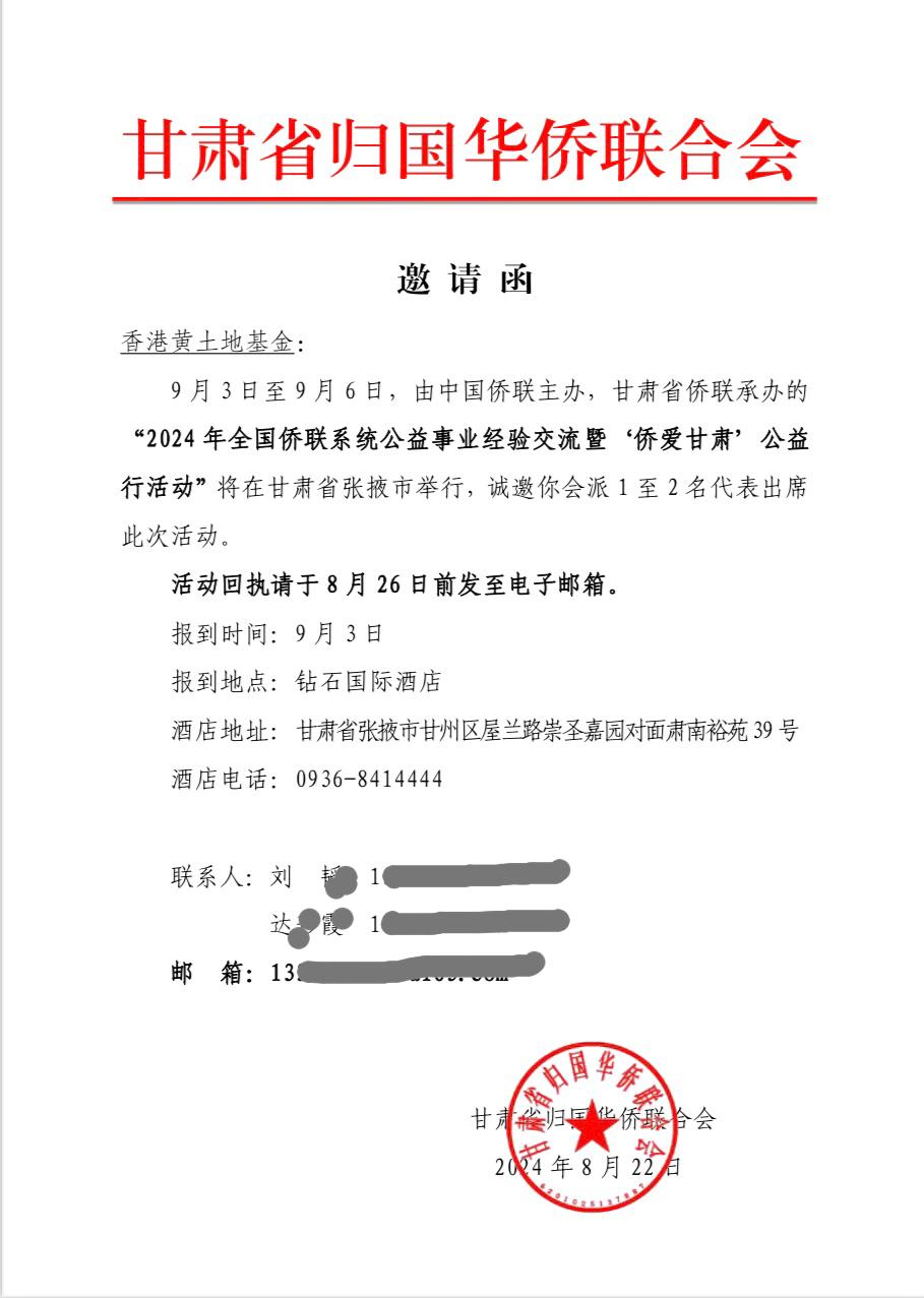 ← 農業考察 相片集 2024 參觀裕固族自治縣明花學校 → 僑愛甘肅公益行 僑愛甘肅公益行 2024年9月,黃土地基金獲邀請參加由甘肅省僑聯主辦的「僑愛甘肅公益行」活動,與會者包括全國僑聯系統的代表和公益團體。活動在甘肅省張掖市舉行,開幕式由國家僑聯程紅副主席主持,甘肅省僑聯袁斌才主席主持其他活動, 包括會議、捐贈儀式、考察、宴會等,期間遇見很多新知舊雨,互相交流,希望以後能有合作的機會。 ← 農業考察 相片集 2024 參觀裕固族自治縣明花學校 → 2024-12-22T11:59:54+08:00 與他人分享這篇文章! FacebookTwitterLinkedInWhatsappEmail